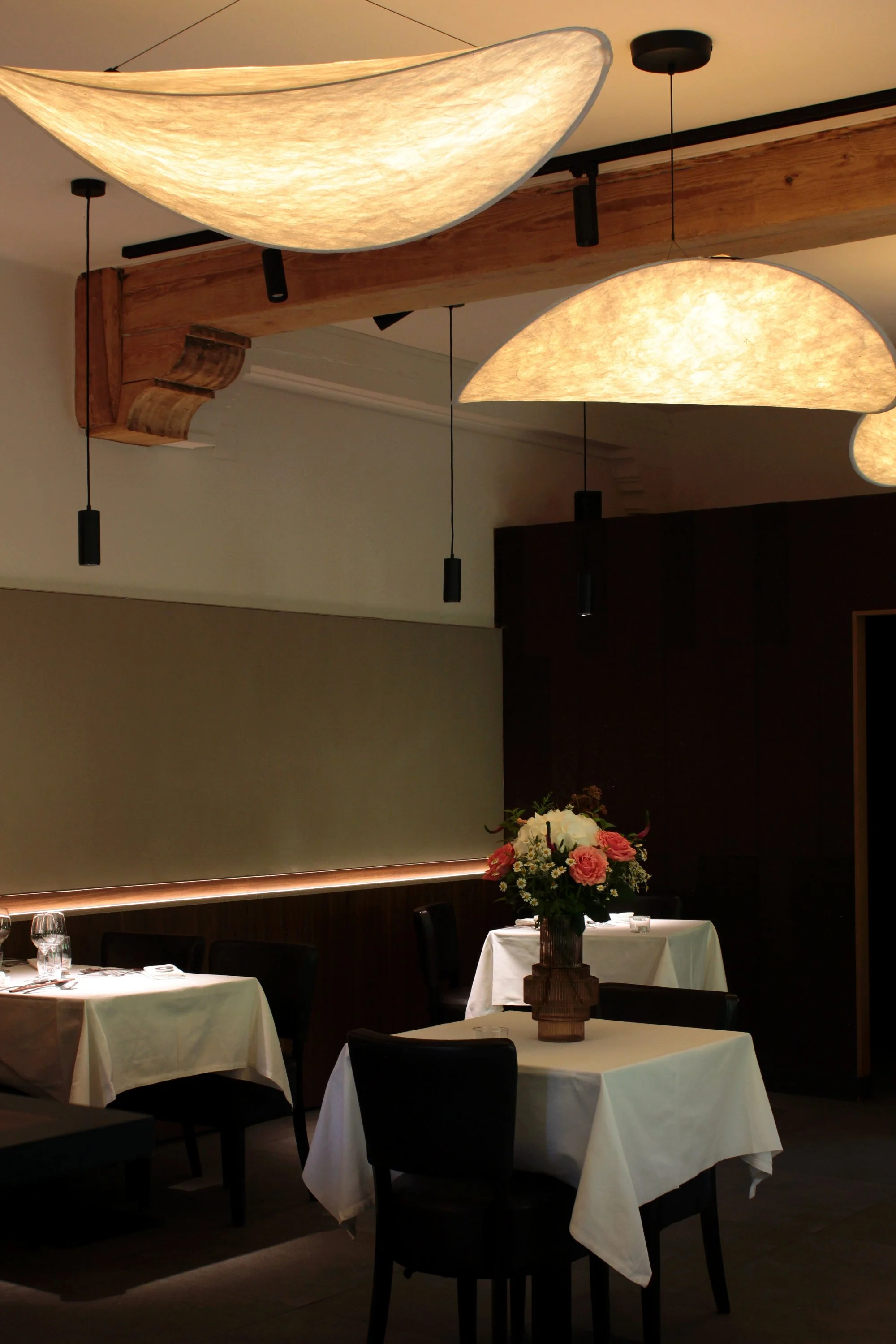Implanté dans un bâti traditionnel alsacien au bord de l’Ill et doté d’un grand jardin, le restaurant gastronomique Miro mélange les inspirations locales et les divers voyages du chef Robin Dorgler. A l’image de sa cuisine, on retrouve dans l’espace des touches des Andes et du Japon dans les couleurs, les matières et le mobilier. Un lien fort uni intérieur et extérieur notamment grâce à la véranda, et un soin particulier a été apporté à l’acoustique pour que l’expérience de chaque client soit agréable.